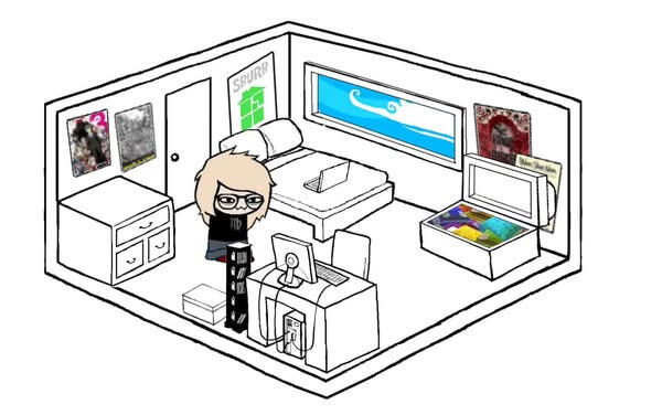 Your name is REYNA, but online you prefer to go by R4INBOWVEINS, as it is your username on several different platforms. There is not much to see in your room, aside from your KICKASS POSTERS of your FAVOURITE BANDS, of course. Some of these bands, visibly, include PANIC! AT THE DISCO, an all-time favourite of yours since you were much younger, along with NEVER SHOUT NEVER and SUBLIME.You have another poster up in your room of a game series called DANGANRONPA. While you can admit that the franchise is no longer a main interest of yours, it will always hold a special place in your heart. You do still enjoy the games and dabble in the FANDOM here and there, but that fandom is exactly what turned you somewhat away from the series.... Enough about all your posters. There must be something else to look at in this bedroom.What will you do?