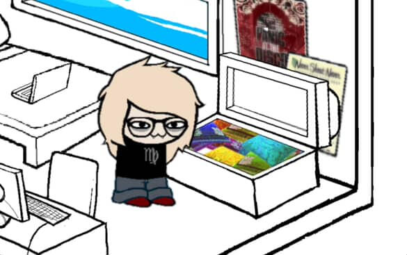 Ah yes. Your BED.Currently, it is holding your trusty LAPTOP, which you use for your mundane hobbies like watching YOUTUBE, posting on TUMBLR or SPACEHEY, or looking up KANDI tutorials. Or, of course, to read HOMESTUCK.You've been making KANDI on and off for the past five years after discovering it in 2020, during COVID-19. You think that you're pretty skilled at it by now, despite giving up the craft for quite some time until recently. You personally don't find it too difficult to jump back into such a hobby after time away from it.However, this is not true for all of your hobbies. You used to spend a lot of your free time DRAWING during your middle and high school years, but eventually gave up because you didn't feel like you were getting very far with it. You do hold onto some pieces that you are particularly proud of, though.You are interested in taking up a new hobby during your GAP YEAR, which you are currently on. It gets hard not to feel lazy taking a year off school when almost NONE of your friends are doing the same.Oh well. More spare time for you.